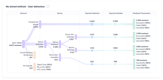 Drill down and analyze user behavior, understand how they interact with your cashier.